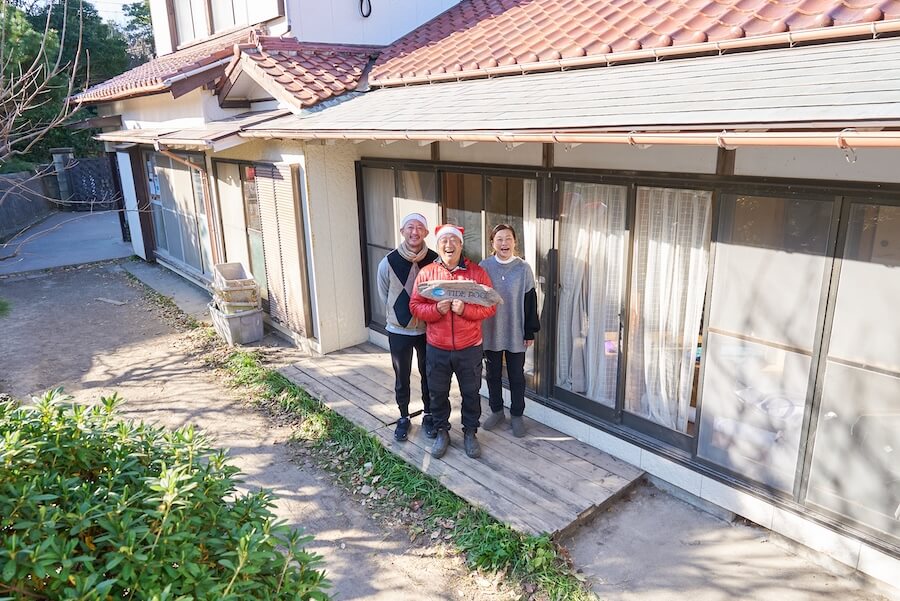 葉山・下山口のTIDE POOL にて、スタッフのメイさん(堀口明子さん)、ガクさん(石川岳さん)とともに。