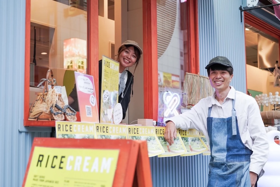 2025年10月、新宿歌舞伎町にRICE CREAMの初店舗がオープン。夫の智史さんと。