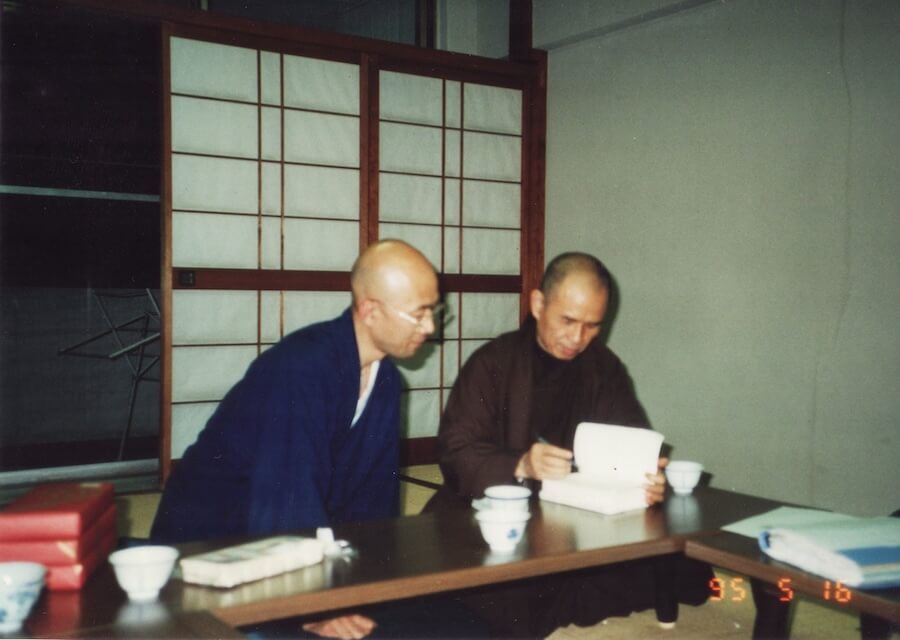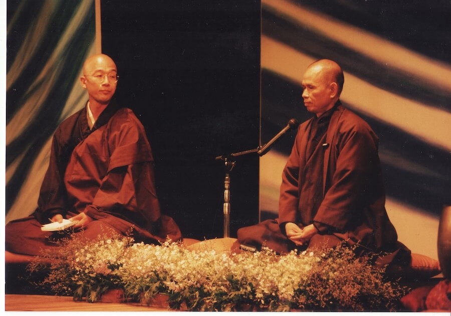 1995年、阪神淡路大震災の3ヶ月後、ティク・ナット・ハンが来日、20日間にわたって各地で講演、リトリートを行う旅に、一照さんは通訳として同行。